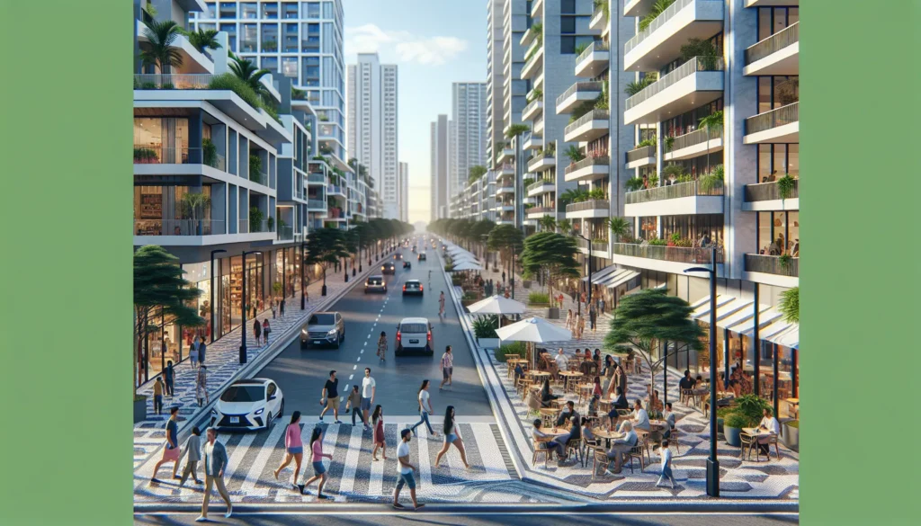 - Pela circulação de pedestres com calçadas contínuas e faixas de fruição pública em quadras mistas.